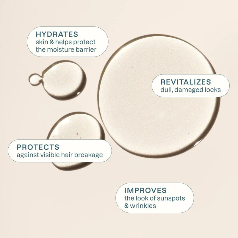 Hair: Apply 2–4 drops to wet or dry hair to boost shine, smooth frizz, and promote healthier-looking strands.