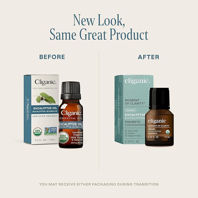 Refresh your mind and elevate your senses with Cliganic’s 100% natural, organic Eucalyptus essential oil. Extracted from the leaves of eucalyptus trees, its fresh, herbaceous aroma evokes world-class spas and wellness retreats, offering a complex yet comforting scent with subtle hints of mint.
