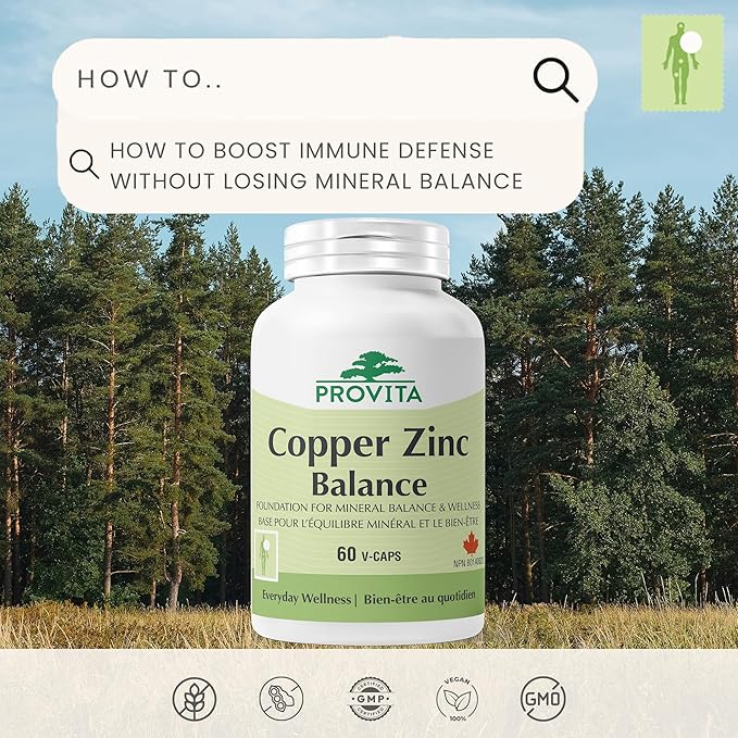 Maintenez l’équilibre essentiel de votre organisme avec Copper Zinc Balance™, une formule scientifiquement conçue pour soutenir l’immunité, la production d’énergie et la santé des tissus conjonctifs.