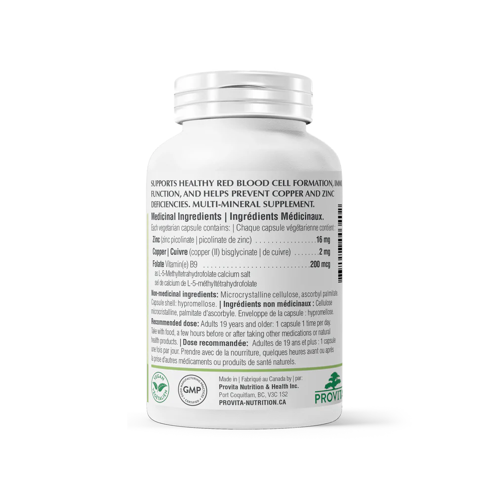 Zinc and copper are vital partners: too much zinc can deplete copper, while too little zinc may weaken your immune system, metabolism, and tissue repair. This clean, vegan formula provides the ideal 8:1 ratio of highly absorbable zinc picolinate and copper bisglycinate, enhanced with activated folate (L-5-MTHF) for optimal metabolic and neurological support.