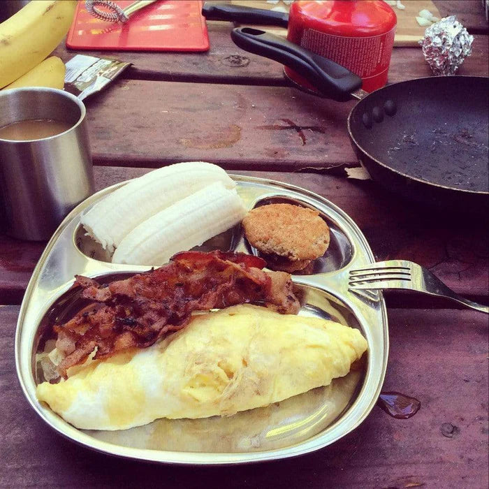 Plastic-free, non-toxic, and long-lasting, this stainless steel camping tray is a sustainable choice for everyday meals or outdoor adventures.